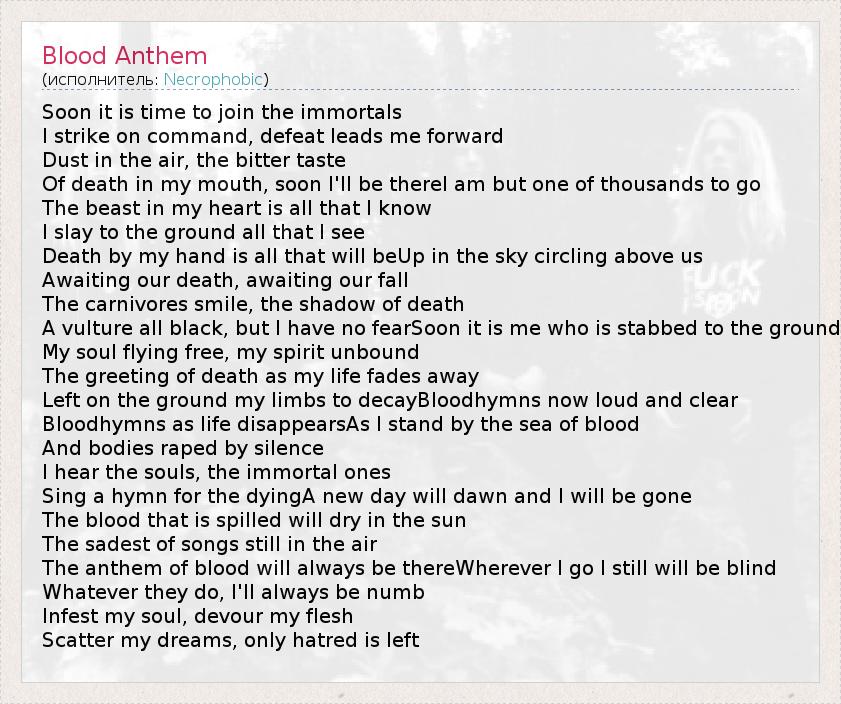 А как ты думаешь, о чем песня "Blood Anthem" ?