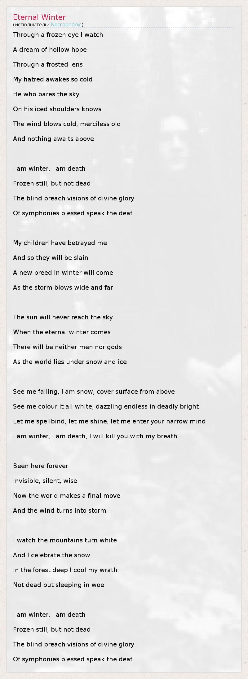 А как ты думаешь, о чем песня "Eternal Winter" ?