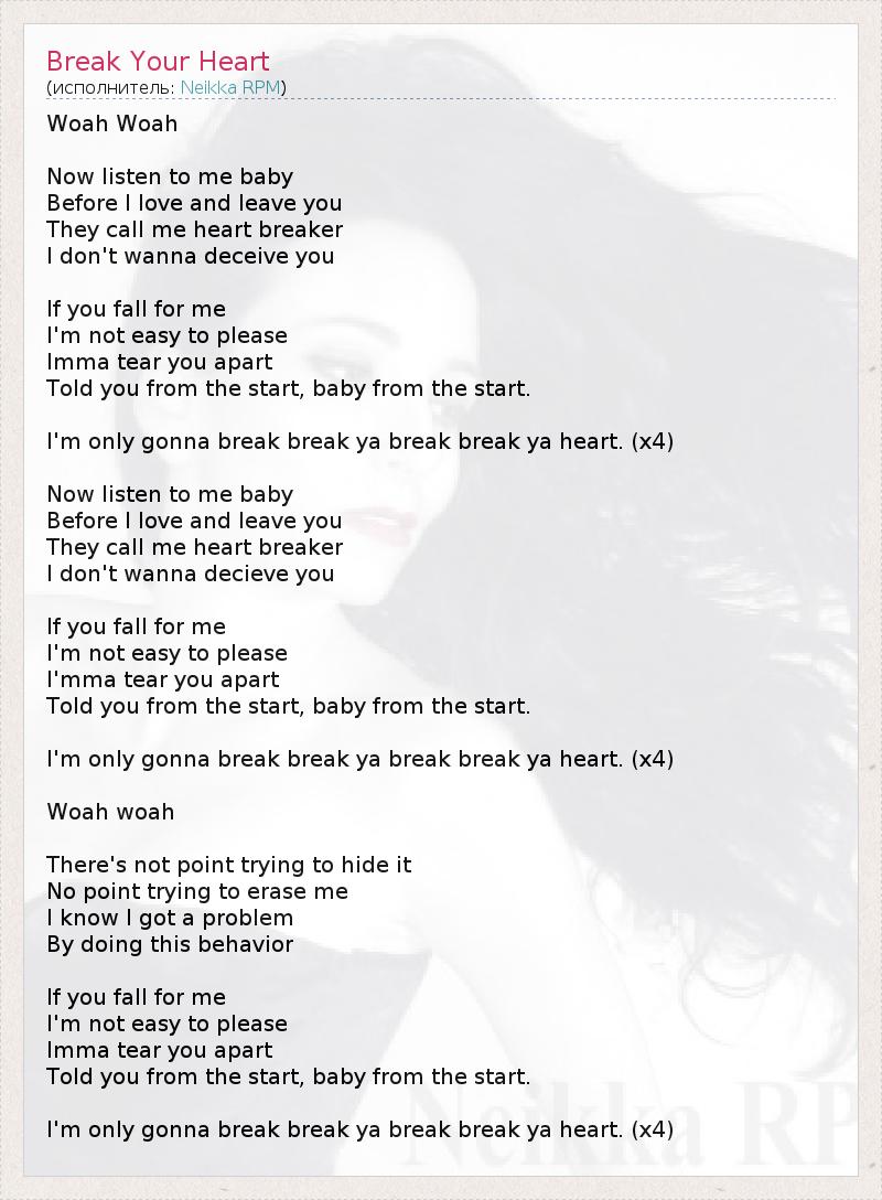 А как ты думаешь, о чем песня "Break Your Heart" ?