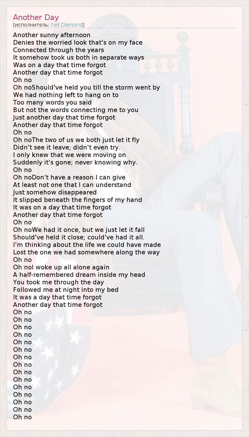 Это интересно:Нил Даймонд родился в Нью-Йорке в еврейском семействе, корни которого уходят в Российскую империю. Пел в одном школьном хоре с Барброй Стрейзанд, с которой много лет спустя запишет дуэтом один из своих самых крупных хитов «You Don’t Bring Me Flowers» (1-е место в США, 1977). В старших классах выступал вместе с одноклассником Джеком Паркером с рок-н-ролльными концертами по образу и подобию братьев Эверли.Настоящий... продолжение