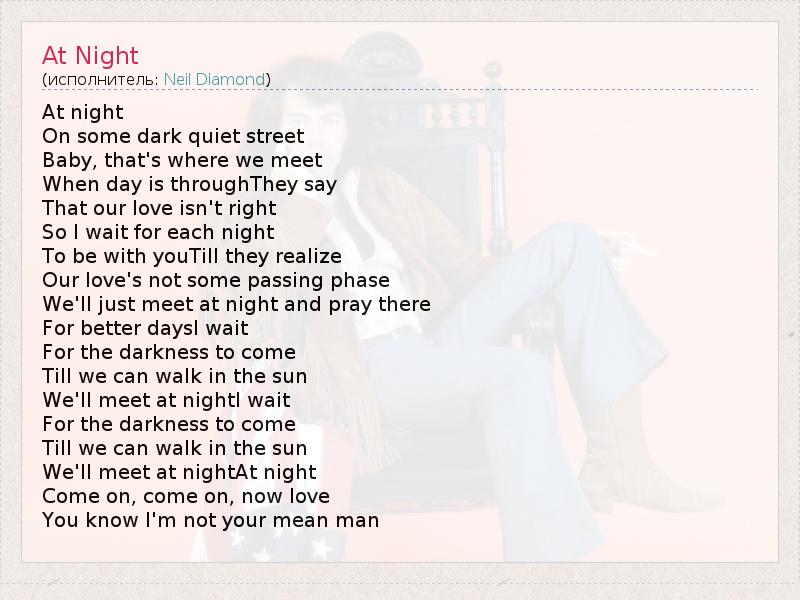 Это интересно:Нил Даймонд родился в Нью-Йорке в еврейском семействе, корни которого уходят в Российскую империю. Пел в одном школьном хоре с Барброй Стрейзанд, с которой много лет спустя запишет дуэтом один из своих самых крупных хитов «You Don’t Bring Me Flowers» (1-е место в США, 1977). В старших классах выступал вместе с одноклассником Джеком Паркером с рок-н-ролльными концертами по образу и подобию братьев Эверли.Настоящий... продолжение