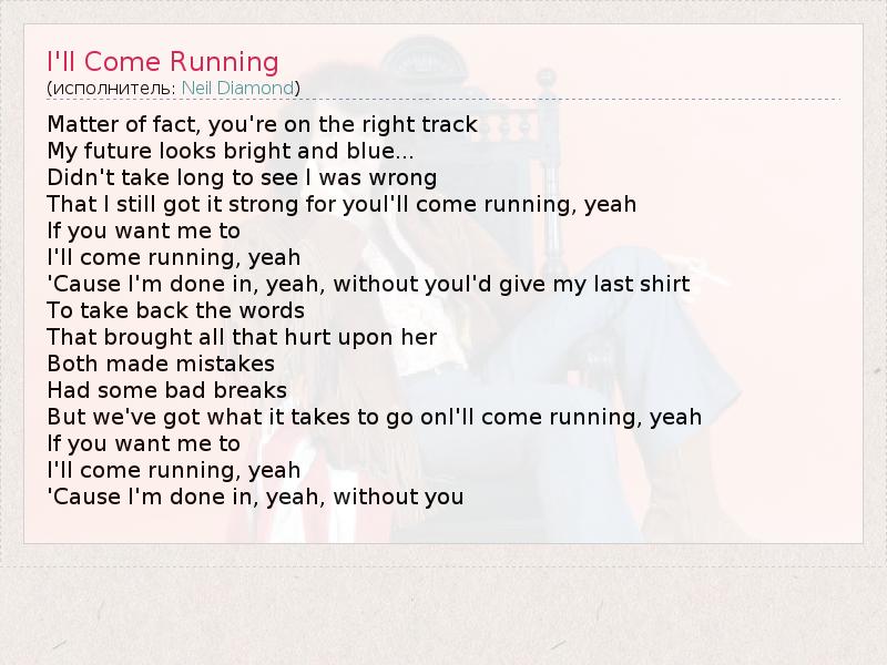 А как ты думаешь, о чем песня "I'll Come Running" ?