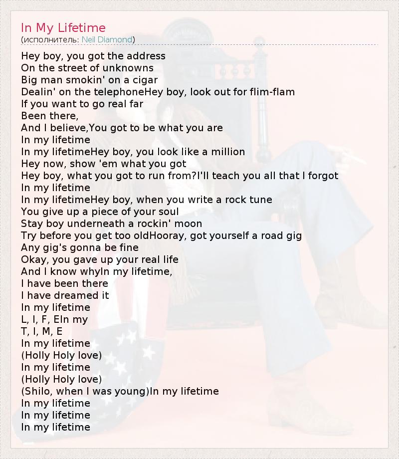 А как ты думаешь, о чем песня "In My Lifetime" ?