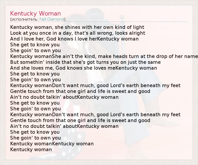 А как ты думаешь, о чем песня "Kentucky Woman" ?