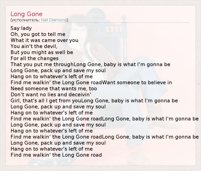 Find me walkin' the Long Gone roadLong Gone, baby is what I'm gonna be