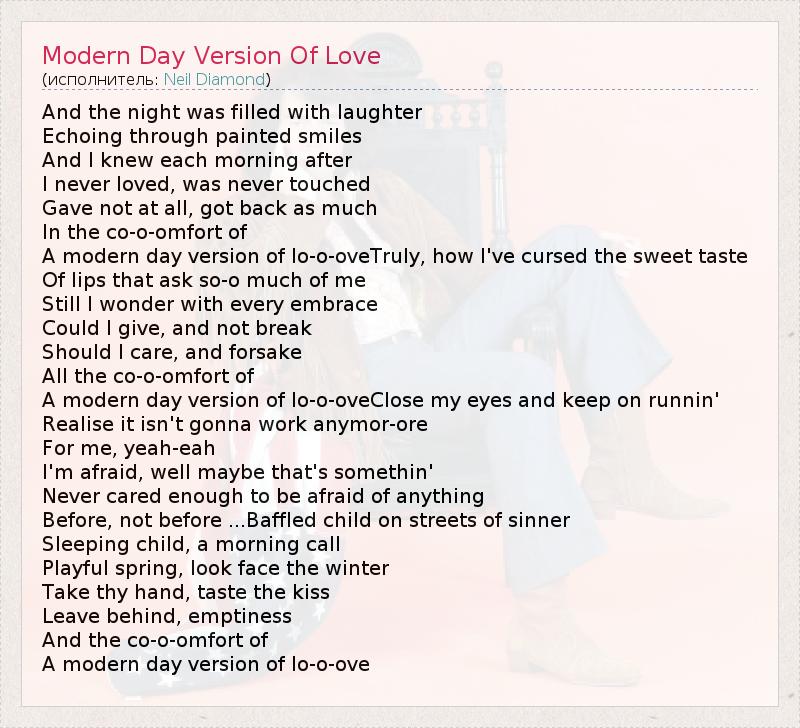 ГлавнаяИсполнителиNeil DiamondModern Day Version Of Love