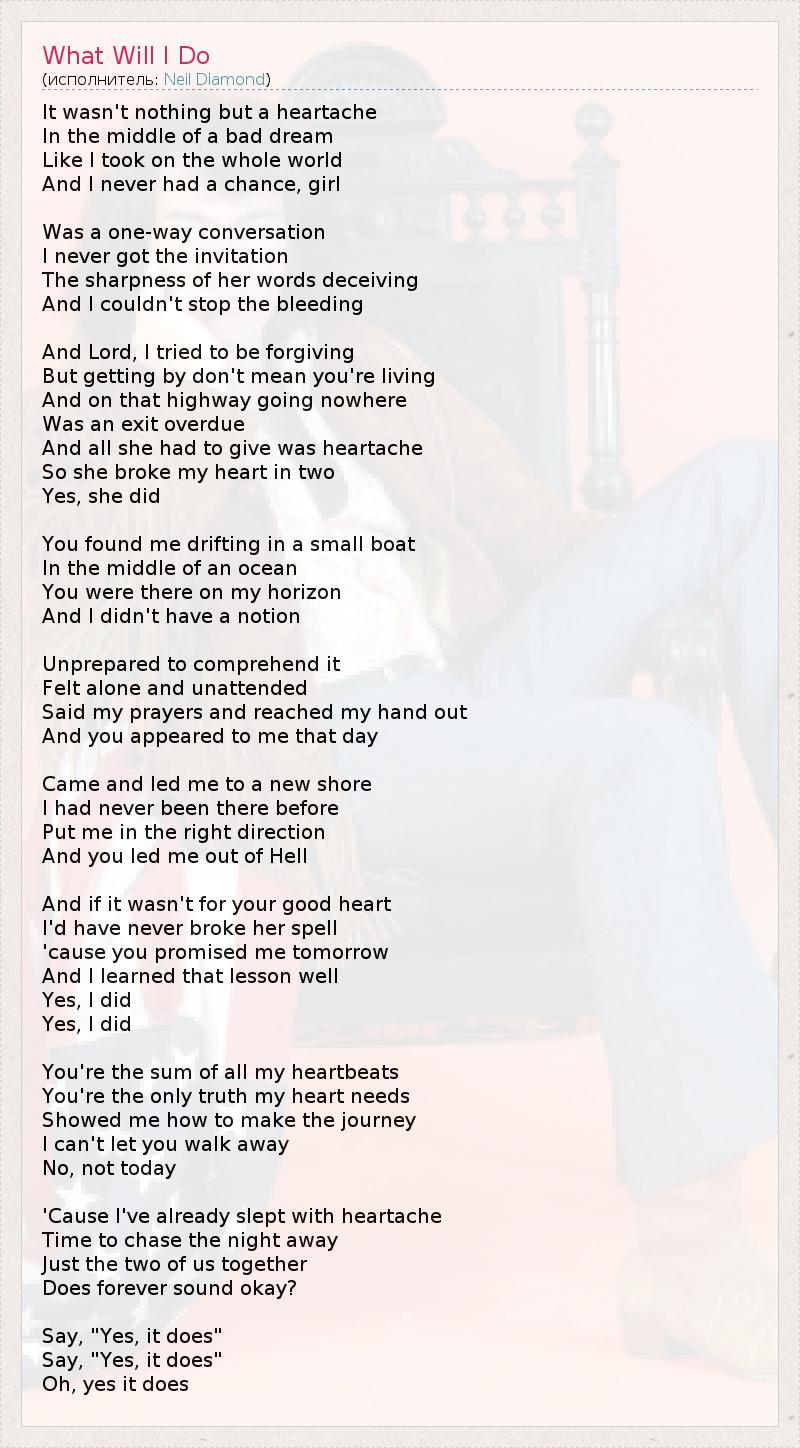 А как ты думаешь, о чем песня "What Will I Do" ?