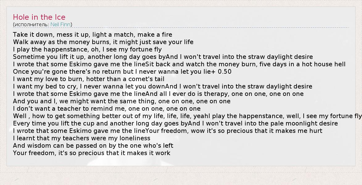 А как ты думаешь, о чем песня "Hole in the Ice" ?