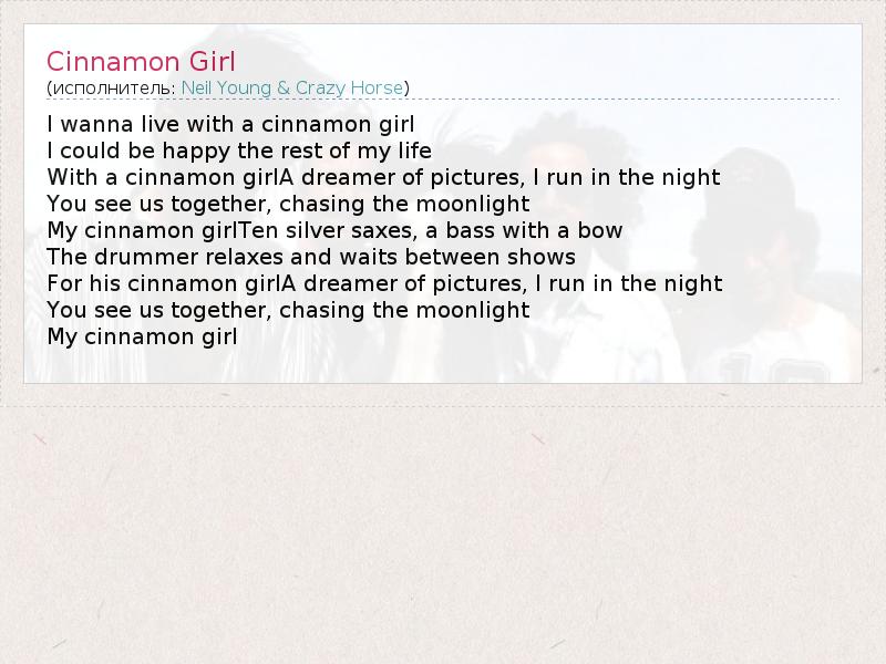 А как ты думаешь, о чем песня "Cinnamon Girl" ?