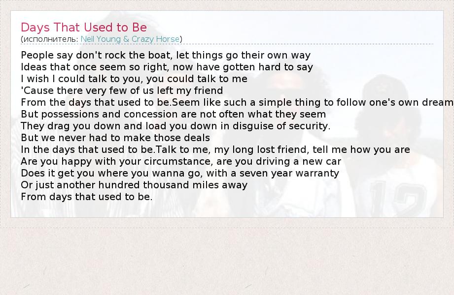 А как ты думаешь, о чем песня "Days That Used to Be" ?