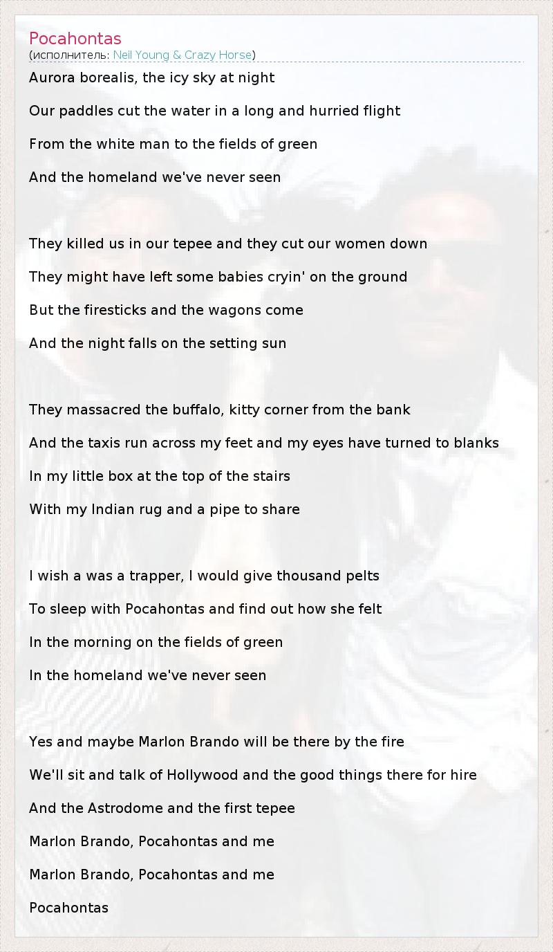 А как ты думаешь, о чем песня "Pocahontas" ?