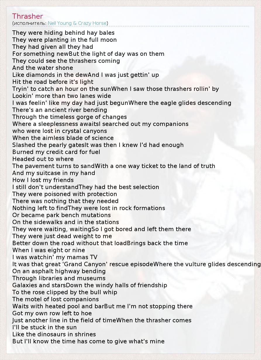 Это интересно:Нил Янг (Neil Young; род. 12 ноября 1945, Торонто) — канадский рок-музыкант, гитарист с весьма своеобразной техникой, композитор, поэт и исполнитель собственных песен, автор сценариев и режиссёр-постановщик нескольких фильмов. Наряду с Бобом Диланом, является одним из самых плодовитых и влиятельных авторов песен в истории рок-музыки. Кажется, нет такого направления рок-музыки, к которому не приложился... продолжение
