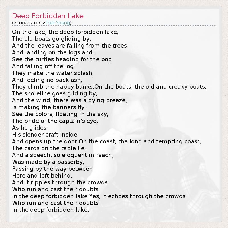 А как ты думаешь, о чем песня "Deep Forbidden Lake" ?