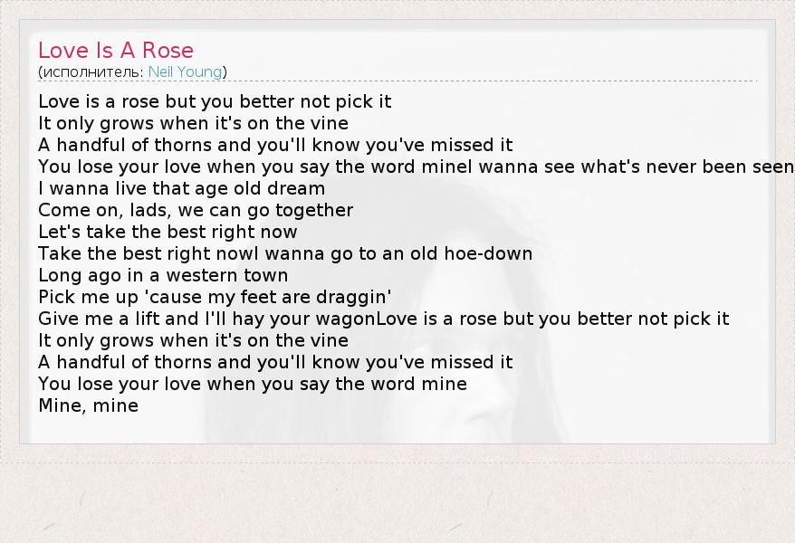 А как ты думаешь, о чем песня "Love Is A Rose" ?