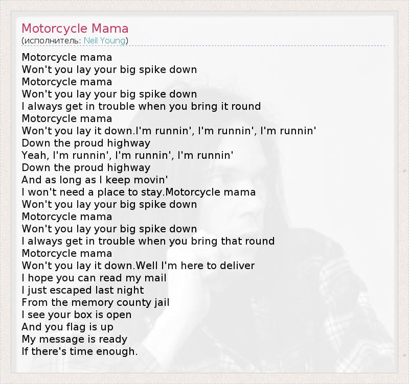 А как ты думаешь, о чем песня "Motorcycle Mama" ?