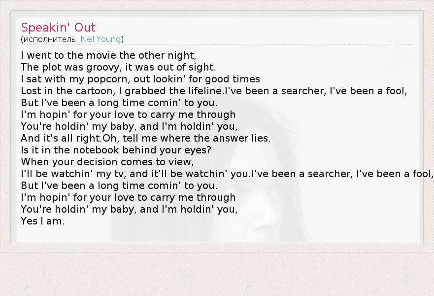 А как ты думаешь, о чем песня "Speakin' Out" ?