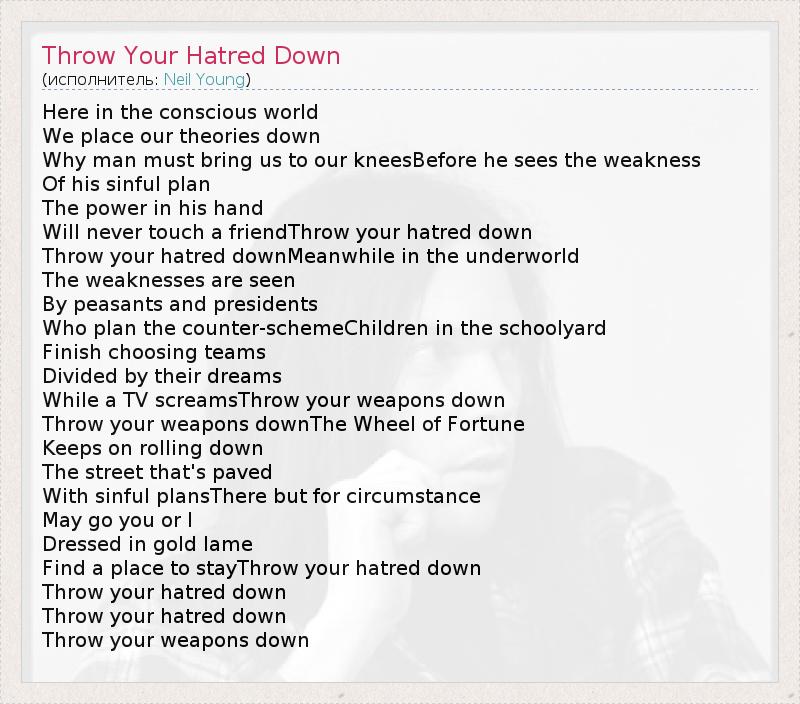 А как ты думаешь, о чем песня "Throw Your Hatred Down" ?