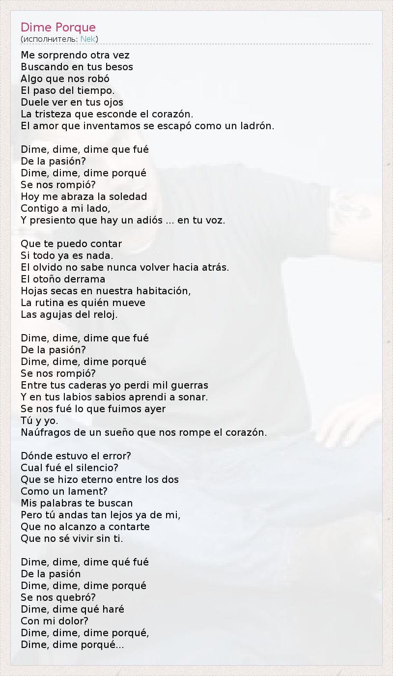 А как ты думаешь, о чем песня "Dime Porque" ?