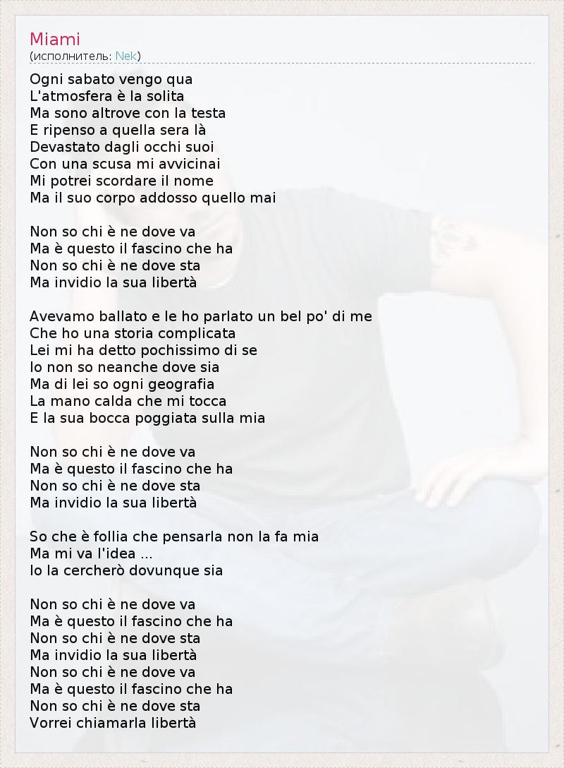 Это интересно:Настоящее имя Нека – Филиппо Невиани (Filippo Neviani). Он родился 6 января 1972 года в местечке Сассуоло (рядом с Моденой). Уже в 4 года он получает в подарок свою первую ударную установку (!), а в 7 лет – акустическую гитару. Под влиянием U2, Yes, Lenny Kravitz и, особенно, The Police, Филиппо пробует играть на басу. В 11 лет Филиппо, вместе со своим другом создает дуэт Winchester. Дебютируют они в 1985 году, играют в небольших... продолжение