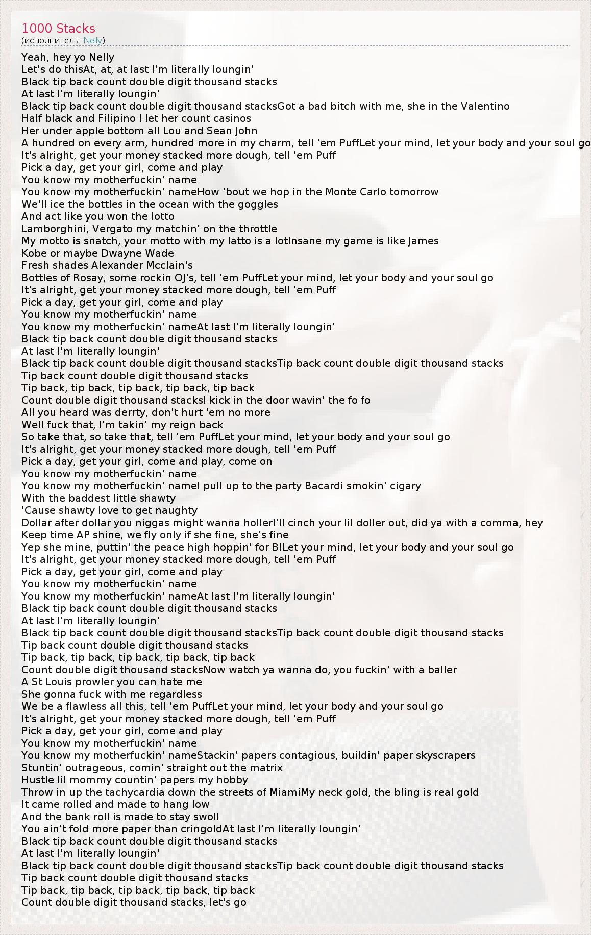 А как ты думаешь, о чем песня "1000 Stacks" ?