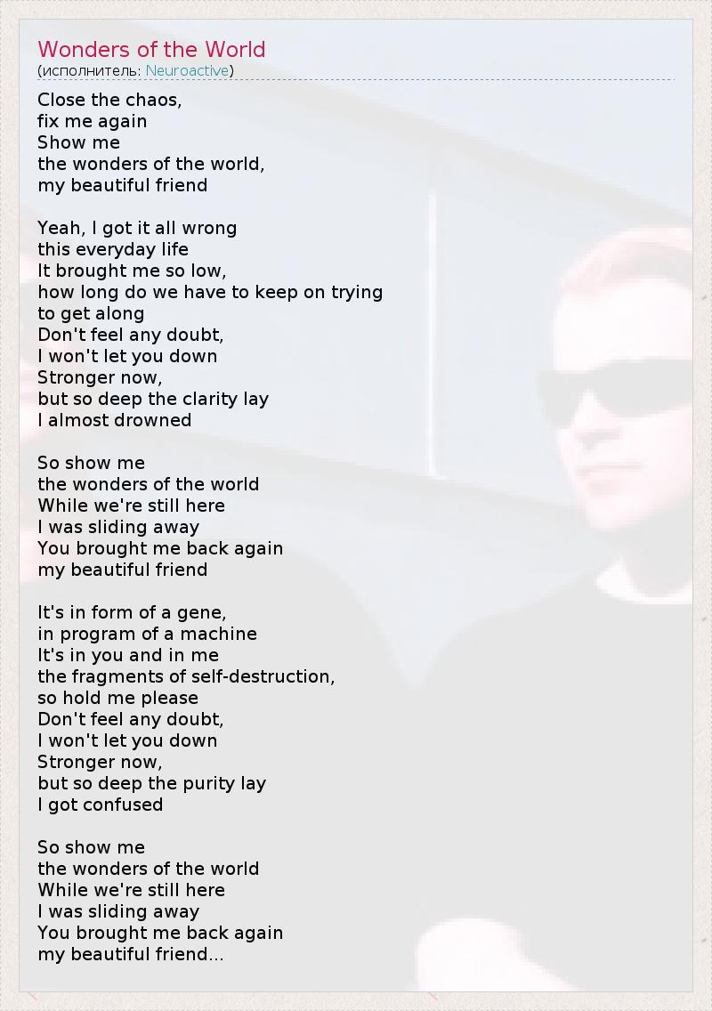 А как ты думаешь, о чем песня "Wonders of the World" ?