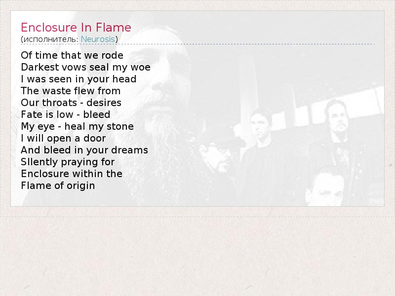 А как ты думаешь, о чем песня "Enclosure In Flame" ?