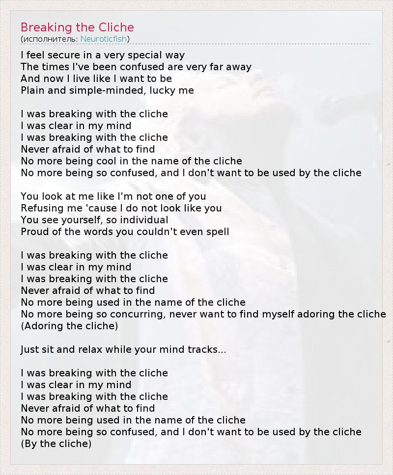 А как ты думаешь, о чем песня "Breaking the Cliche" ?