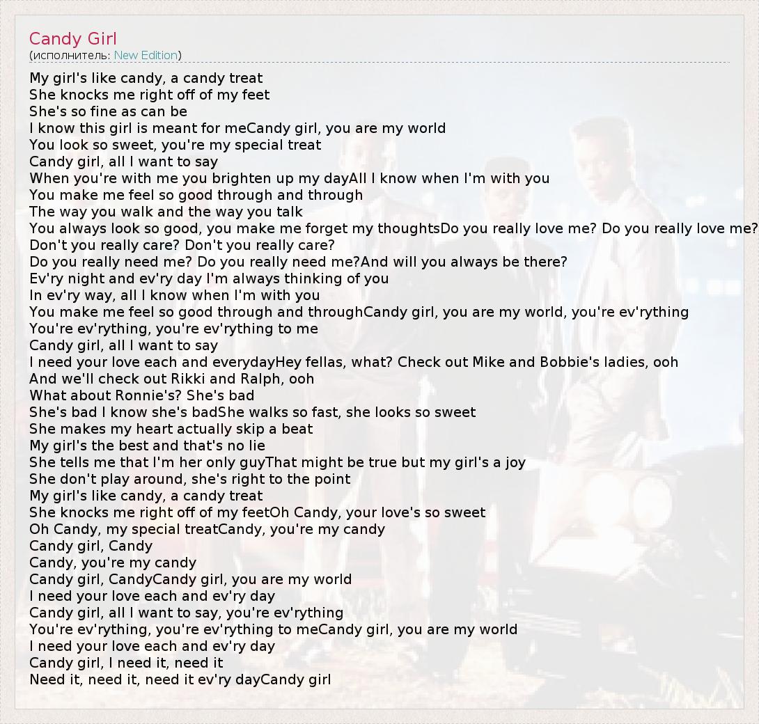 А как ты думаешь, о чем песня "Candy Girl" ?
