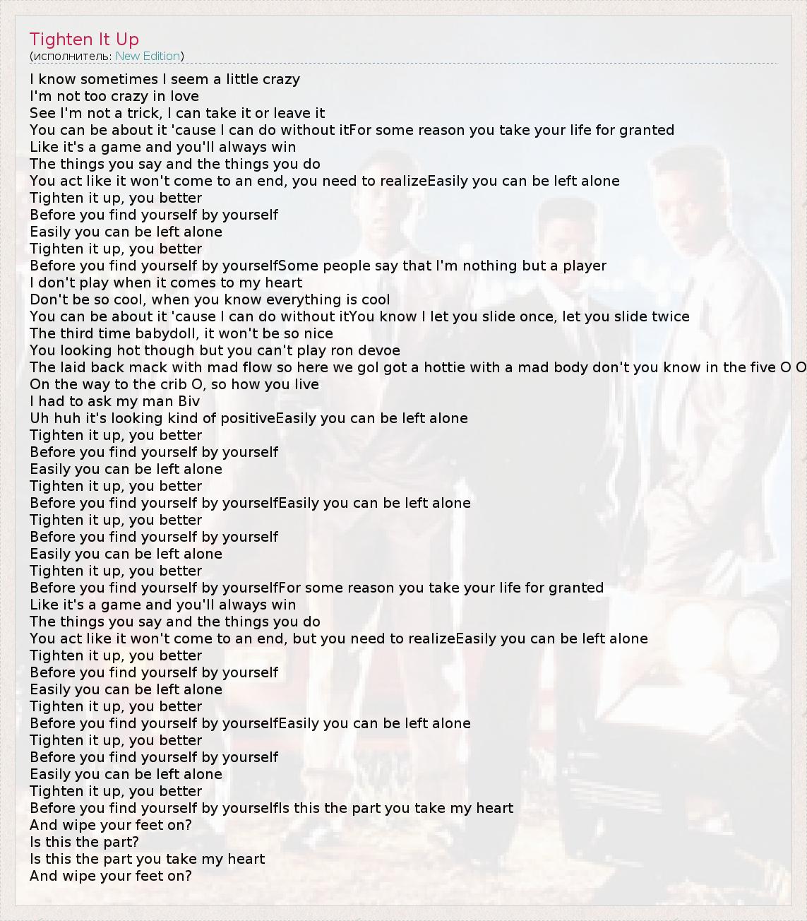 А как ты думаешь, о чем песня "Tighten It Up" ?