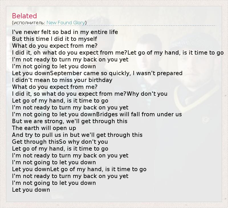 I did it, oh what do you expect from me?Let go of my hand, is it time to go