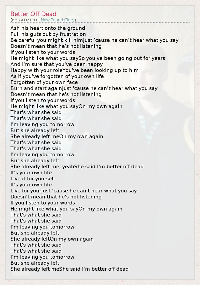 А как ты думаешь, о чем песня "Better Off Dead" ?