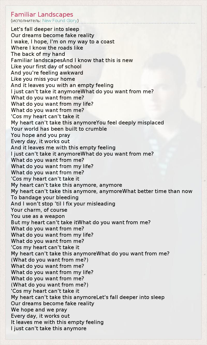 А как ты думаешь, о чем песня "Familiar Landscapes" ?