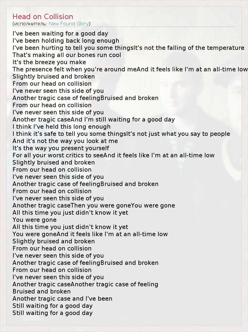 А как ты думаешь, о чем песня "Head on Collision" ?