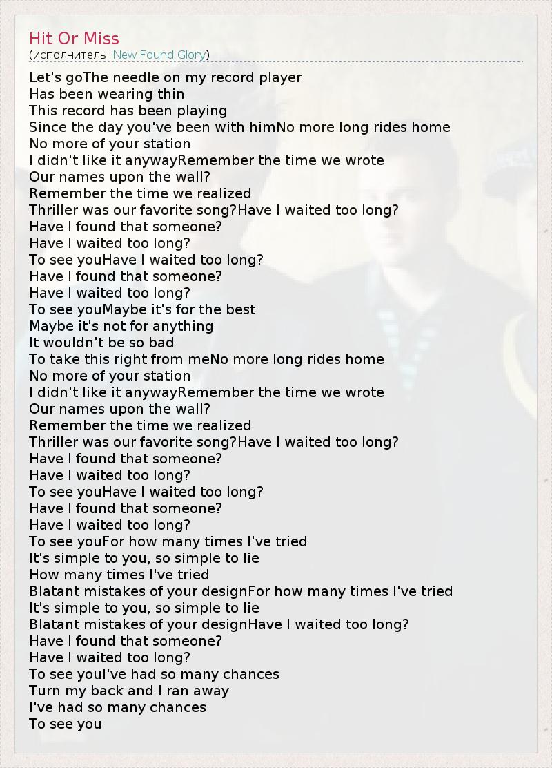 А как ты думаешь, о чем песня "Hit Or Miss" ?