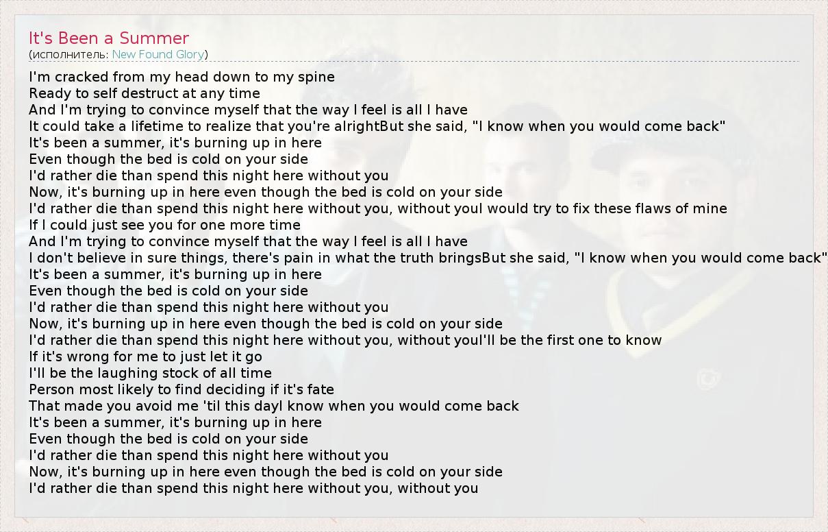А как ты думаешь, о чем песня "It's Been a Summer" ?