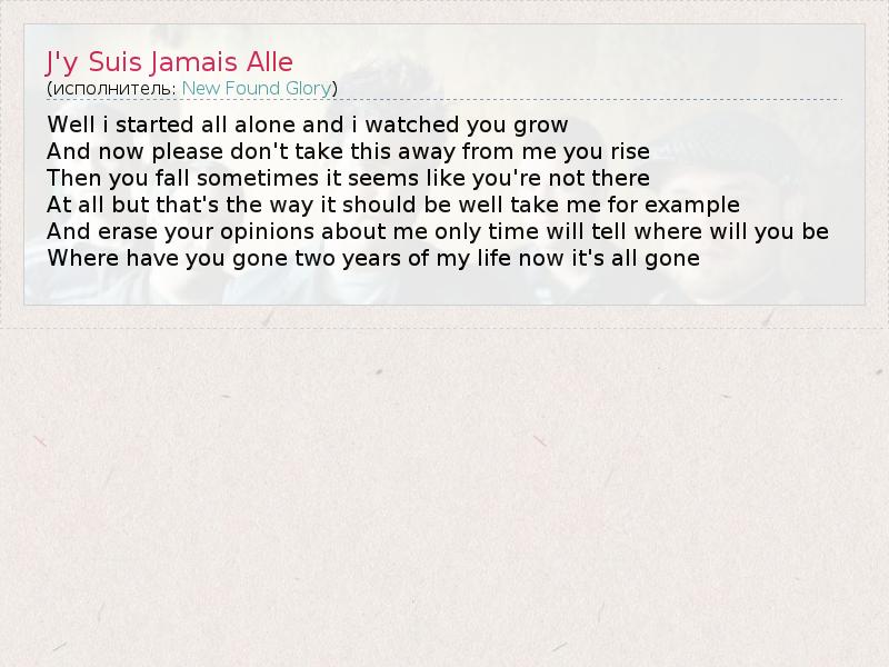 А как ты думаешь, о чем песня "J'y Suis Jamais Alle" ?