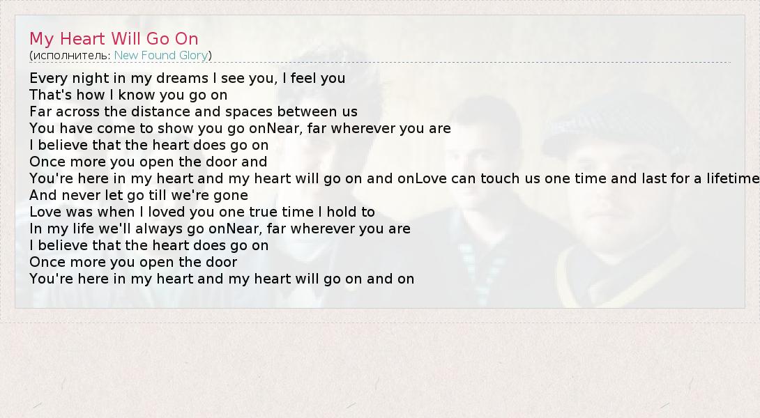 А как ты думаешь, о чем песня "My Heart Will Go On" ?