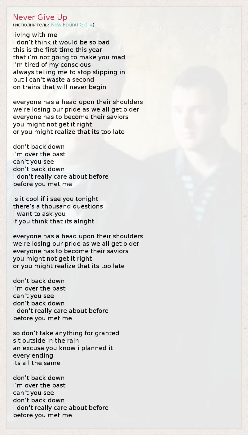 А как ты думаешь, о чем песня "Never Give Up" ?