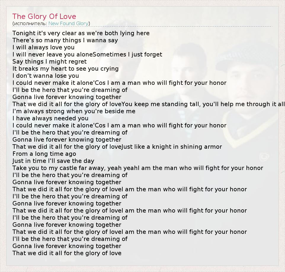 А как ты думаешь, о чем песня "The Glory Of Love" ?