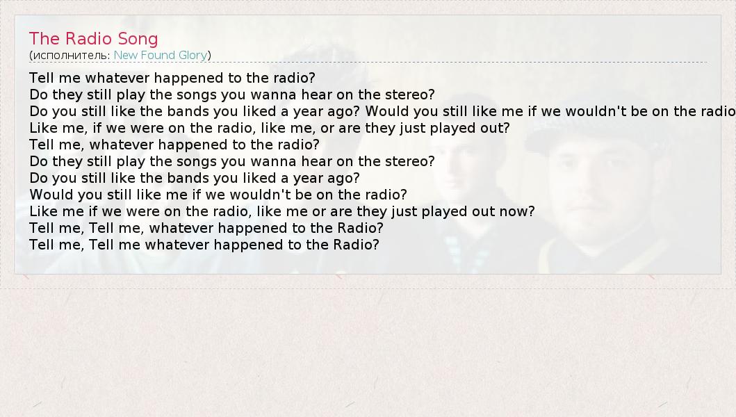 А как ты думаешь, о чем песня "The Radio Song" ?