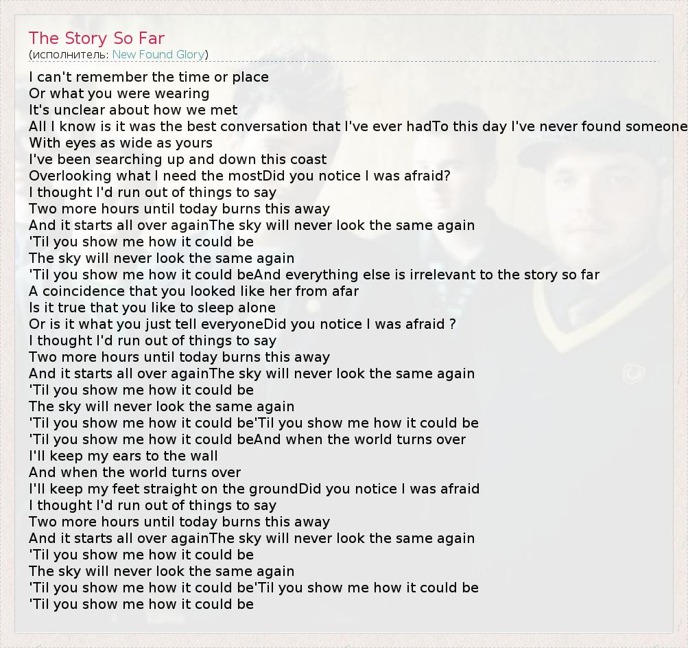 А как ты думаешь, о чем песня "The Story So Far" ?