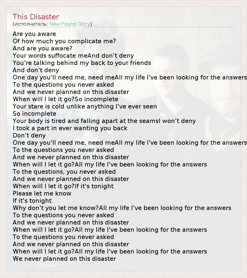 Это интересно:New Found Glory – американская поп-панк группа из Южной Флориды. Коллектив образовался в 1997 году. На данный момент они выпустили 2 мини-альбома, 6 полноформатных альбомов, 2 кавер-альбома, сборник лучших хитов. Они известны своим быстрым и энергичным стилем поп-панка и заслужили уважение поклонников своими живыми выступлениями.Дебютный EP и Nothing Gold Can Stay (1997—1999)Группа... продолжение