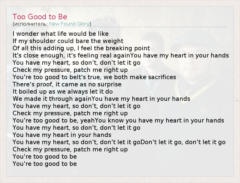 А как ты думаешь, о чем песня "Too Good to Be" ?