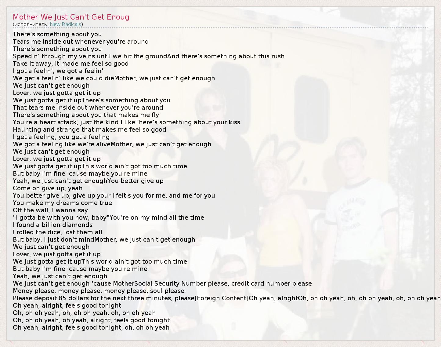 ГлавнаяИсполнителиNew RadicalsMother We Just Can't Get Enoug