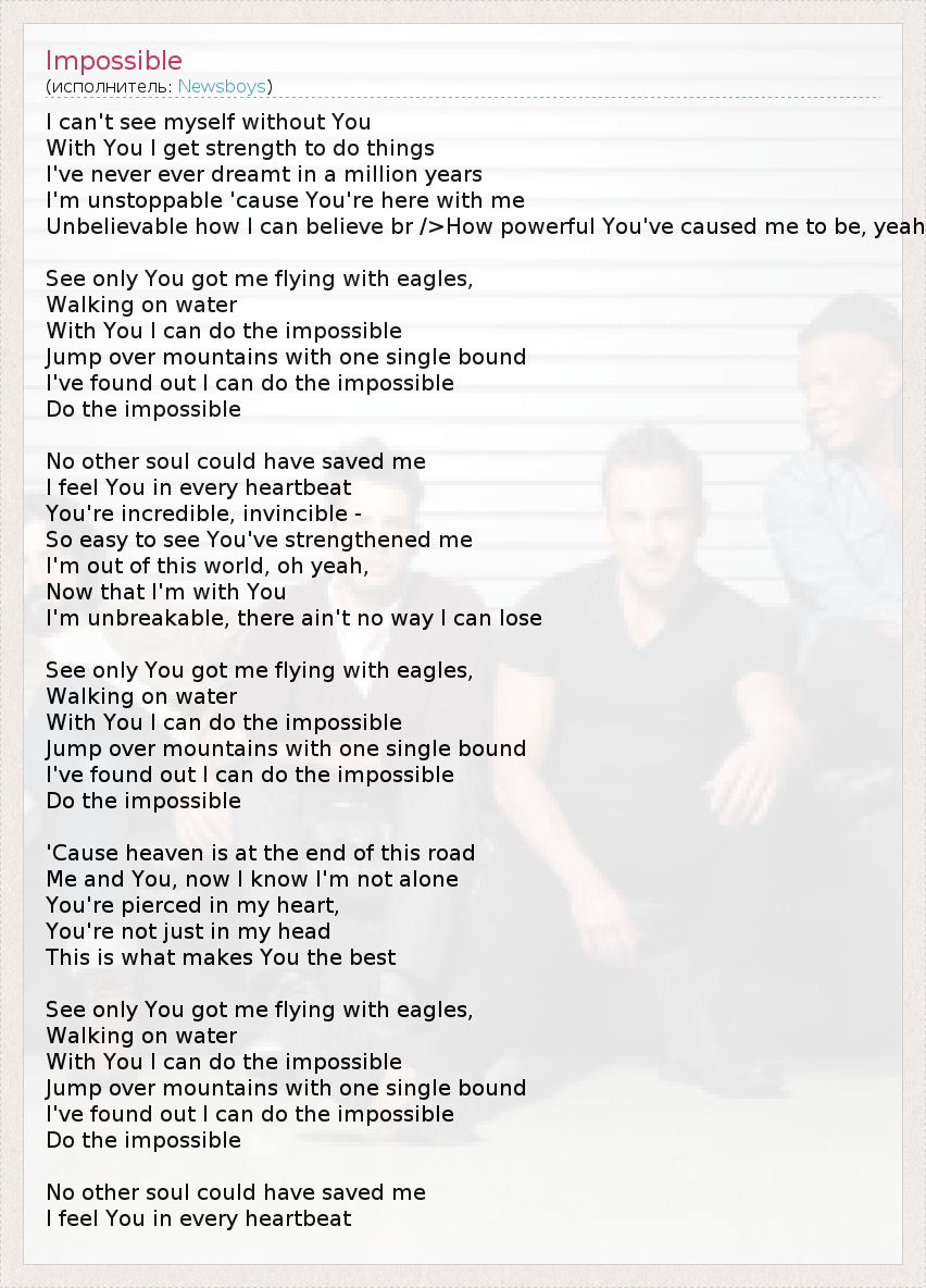 Это интересно:Группа Newsboys была организована в 1985 году в Австралии Питером Фарлером, Джоном Джеймсом, Шоном Тейлором и Джорджем Пардикисом. Изначально группа называлась The News, в честь Good News (Евангелия), но, после того, как команда приехала в Америку, название было изменено на Newsboys, дабы избежать конфликта с одноименно американской группой.С самого начала группа несла в своих песнях благую весть, и... продолжение