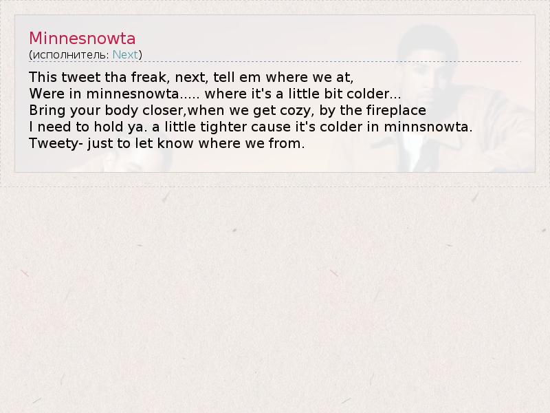 А как ты думаешь, о чем песня "Minnesnowta" ?