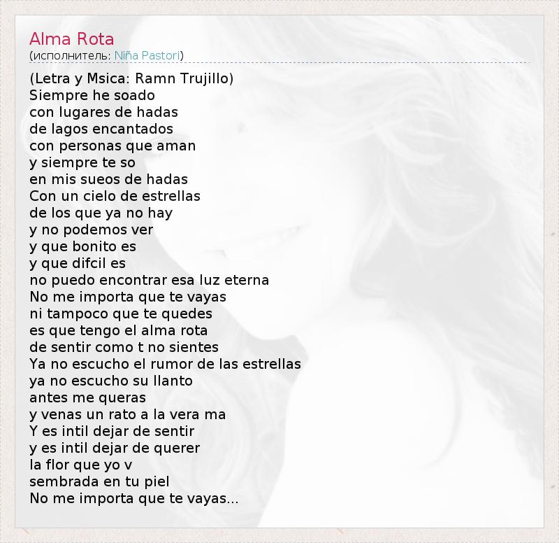 А как ты думаешь, о чем песня "Alma Rota" ?