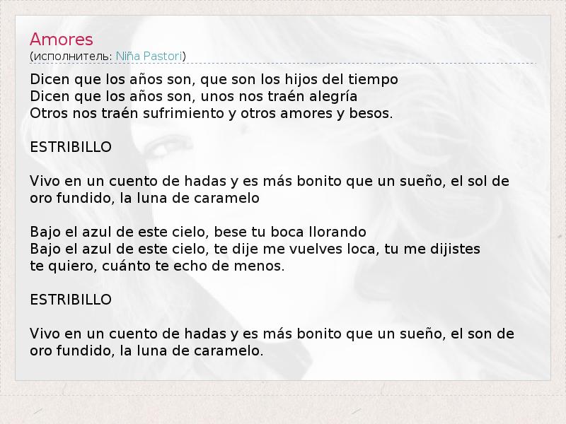 Это интересно:Нинья Пастори (Niña Pastori) – испанская исполнительница фламенко (кантаора). Настоящее имя - Maria Rosa Garcia (Мария Роза Гарсия).Она родилась на острове Сан-Фернандо (Кадис) 15 января 1978 года в шесть утра. В этот же день она стала известна, потому что у её родителей (Pastora и Jose) было четверо сыновей, и рождение дочки стало праздником в районе Boquete, где они жили.Будущая артистка стала петь в четыре... продолжение