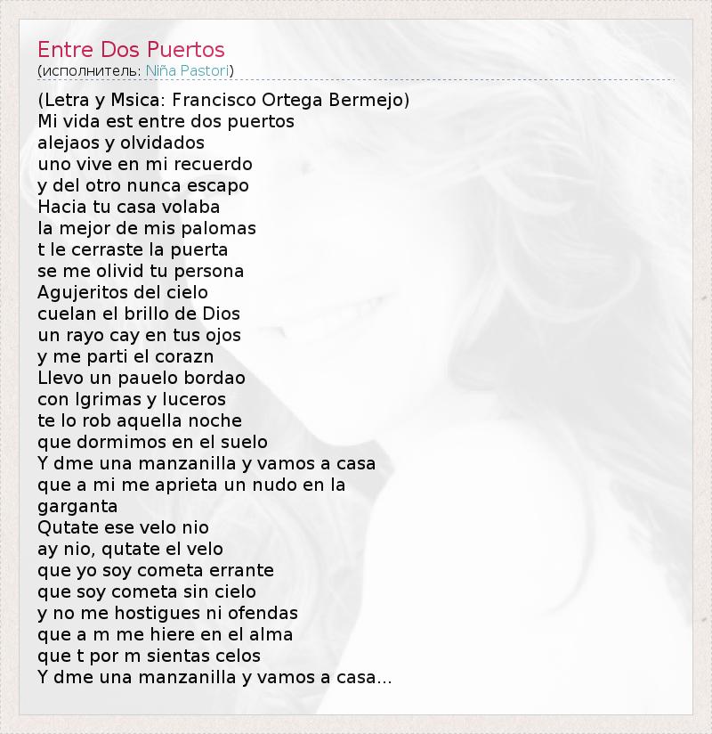 А как ты думаешь, о чем песня "Entre Dos Puertos" ?