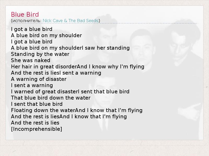А как ты думаешь, о чем песня "Blue Bird" ?